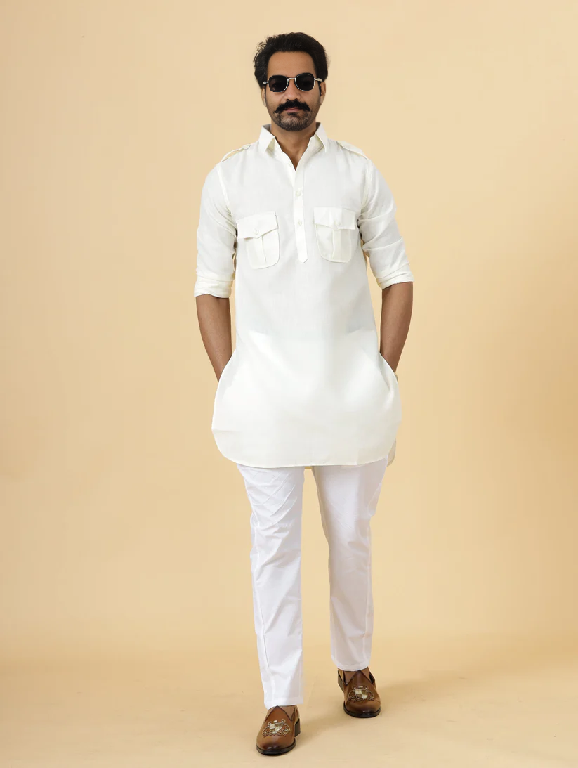 🏆 What Makes Our Off-White Hunting Style Kurta Pajama Different?