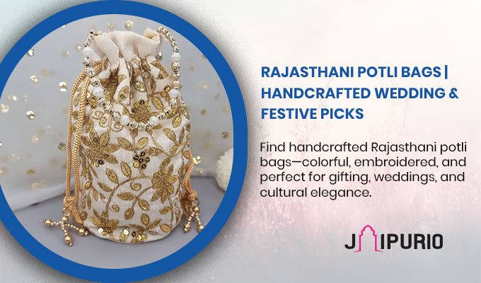 Discover stunning handcrafted potli bags from Jaipurio - featuring intricate embroidery, traditional techniques, and pre...