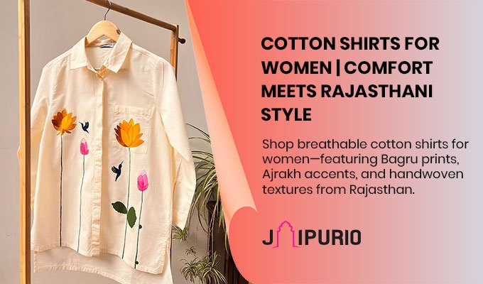 Discover exquisite handcrafted cotton shirts from Jaipurio - featuring traditional block printing, hand embroidery, and...
