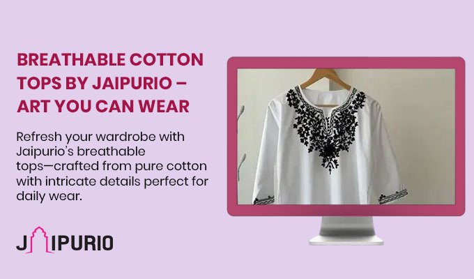 Refresh your wardrobe with Jaipurio's breathable tops—crafted from pure cotton with intricate details perfect for daily...