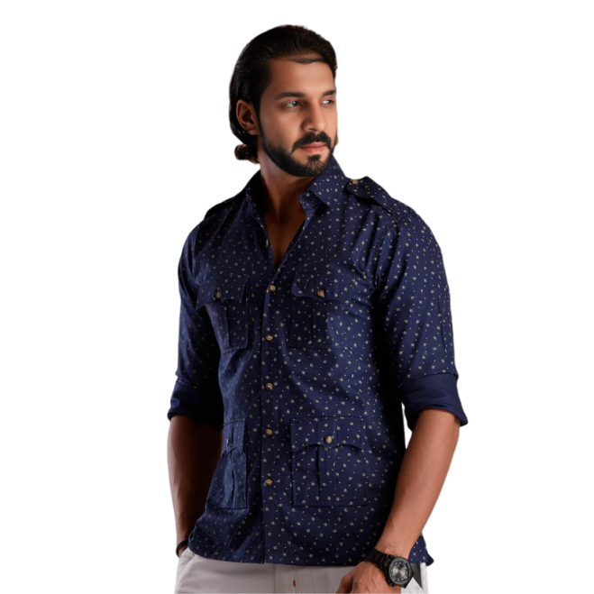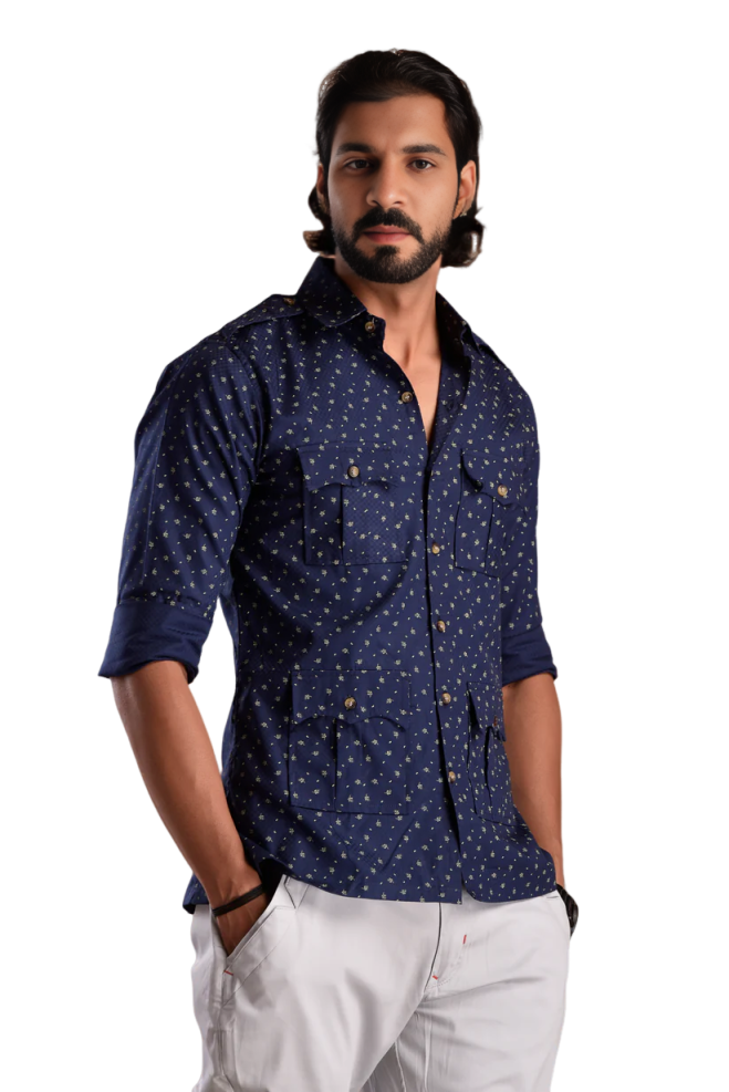 Our Sapphire Blue Hunting Style Cotton Printed Shirt Men offers you: