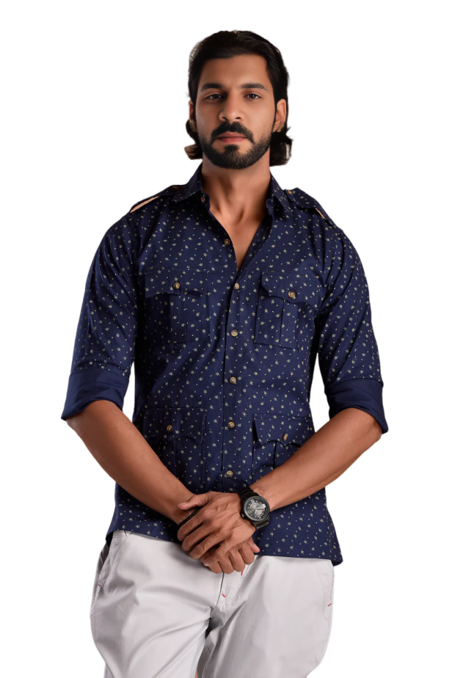 Our Sapphire Blue Hunting Style Cotton Printed Shirt Men addresses each premium challenge:
