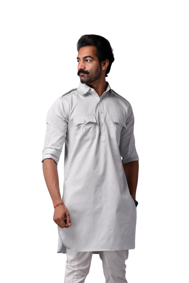 Your Ice Blue Short Hunting Style Kurta Pajama Set offers: