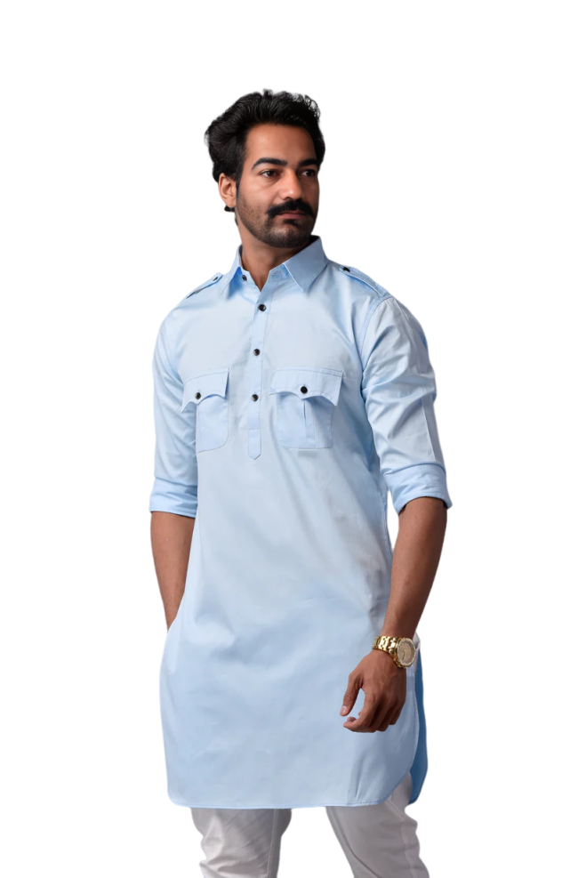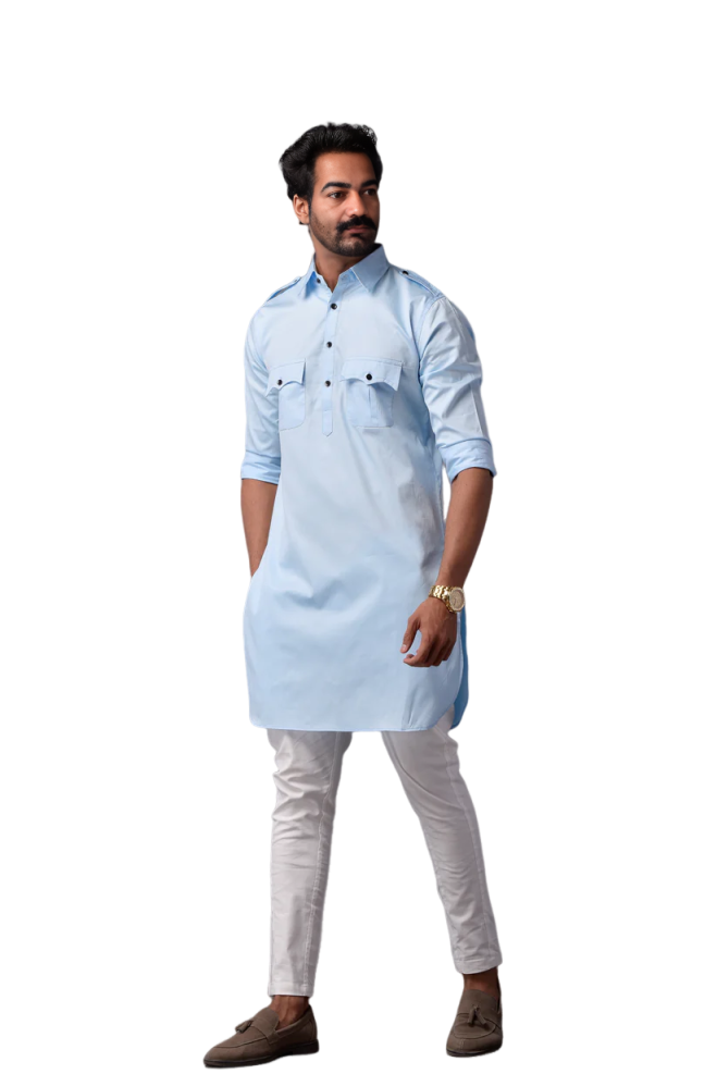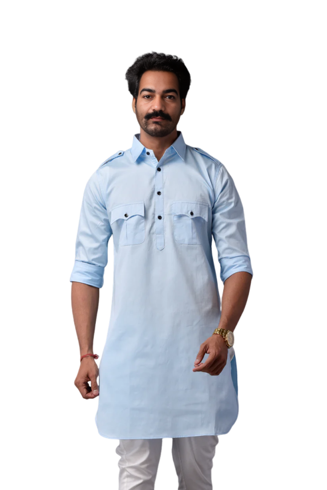 Your Sky Blue Short Hunting Style Kurta Pajama Set offers: