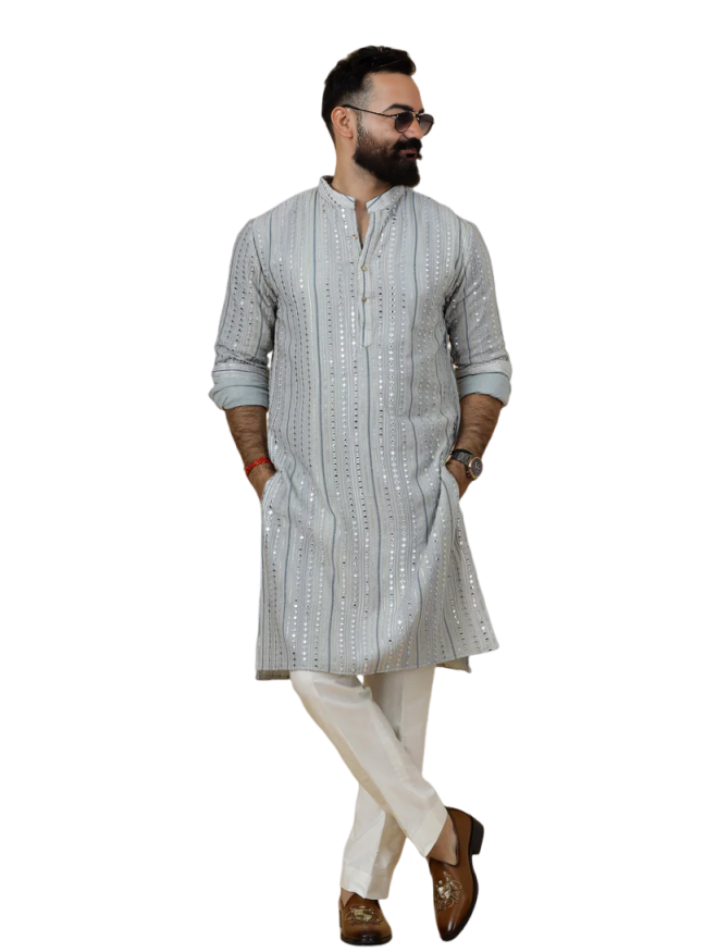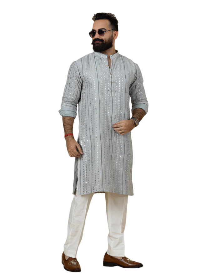 Our Grey Dual Color Mirror Embroidered Kurta Pajama offers you: