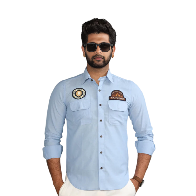Our Sky Blue Patchwork Cotton Shirt Mens addresses each creative challenge: