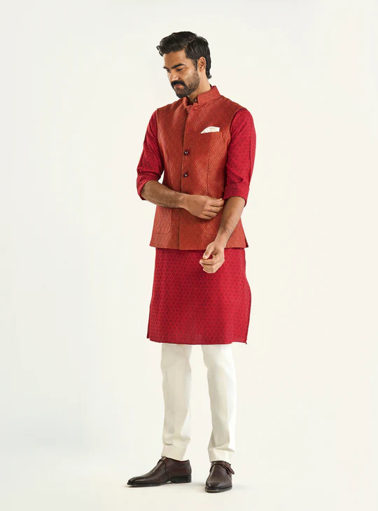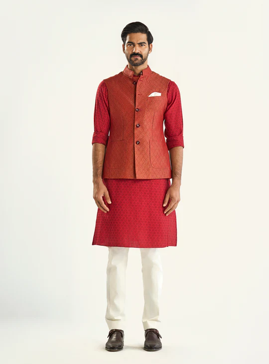 🏰 Exude regal charm with our Qila Waistcoat. Expertly tailored with fortress-inspired design, Rajput elegance, and precise measurements. Perfect for formal occasions, distinguished events, and royal gatherings. Each piece combines Qila grandeur with impeccable fit and comfort.