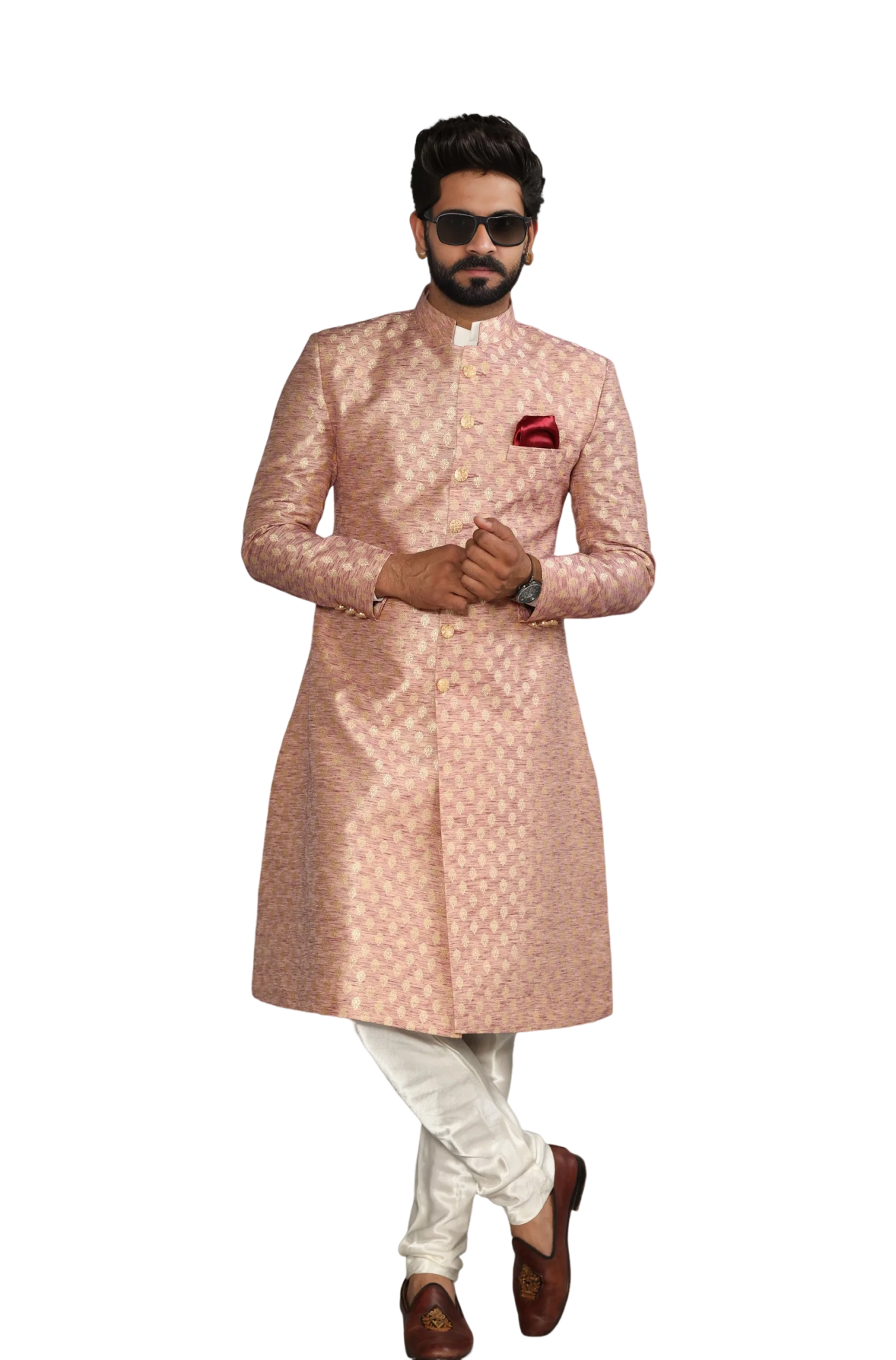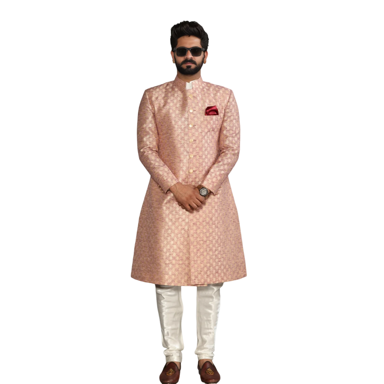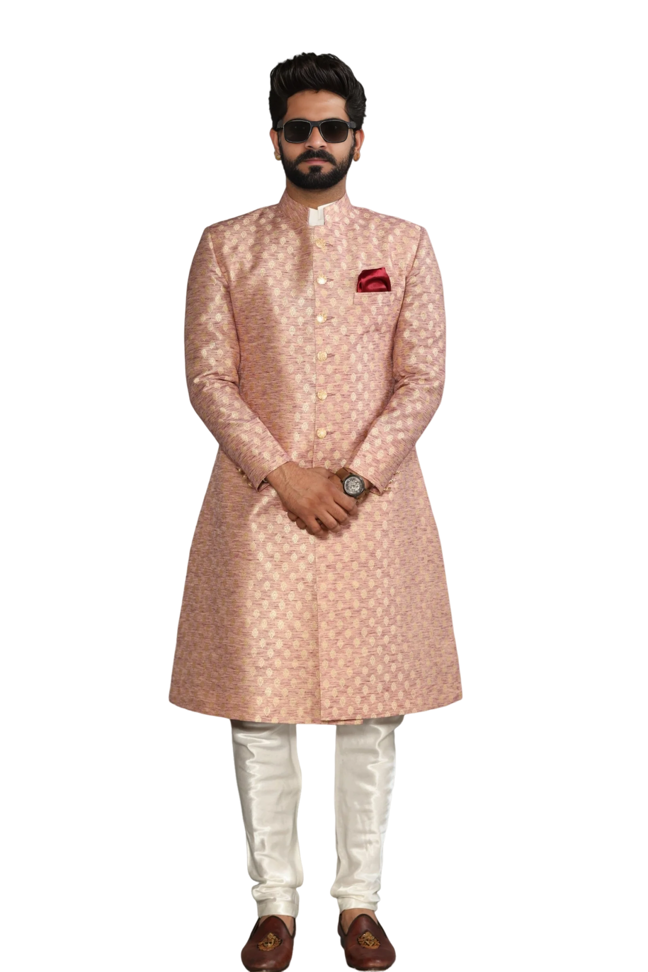 When you wear our Handmade Banarasi Father Son Achkan Silver Pink Combo, you're not merely coordinating clothing -- you're creating visual poetry of paternal love, transforming events into generational memories.
