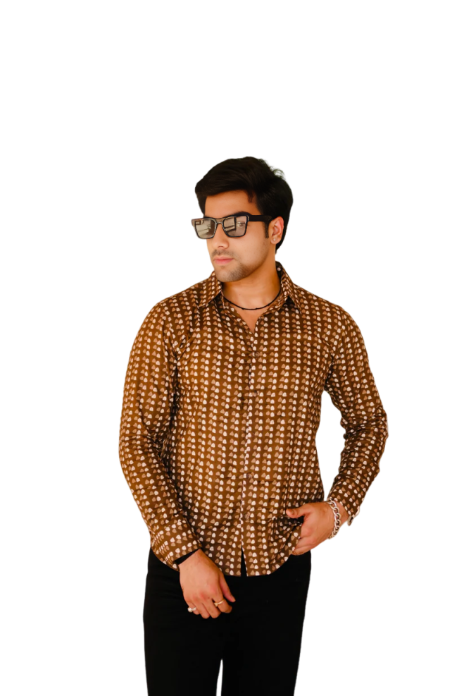 Our Walnut Brown Sanganeri Print Cotton Shirt solves every heritage style challenge: