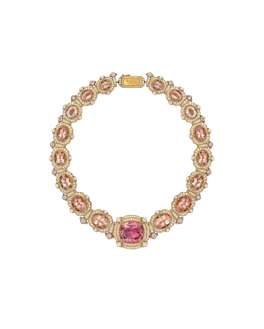 Embrace modern glamour with our Zaveri Pearls Pink Cubic Brass Set - where contemporary style meets dazzling design!