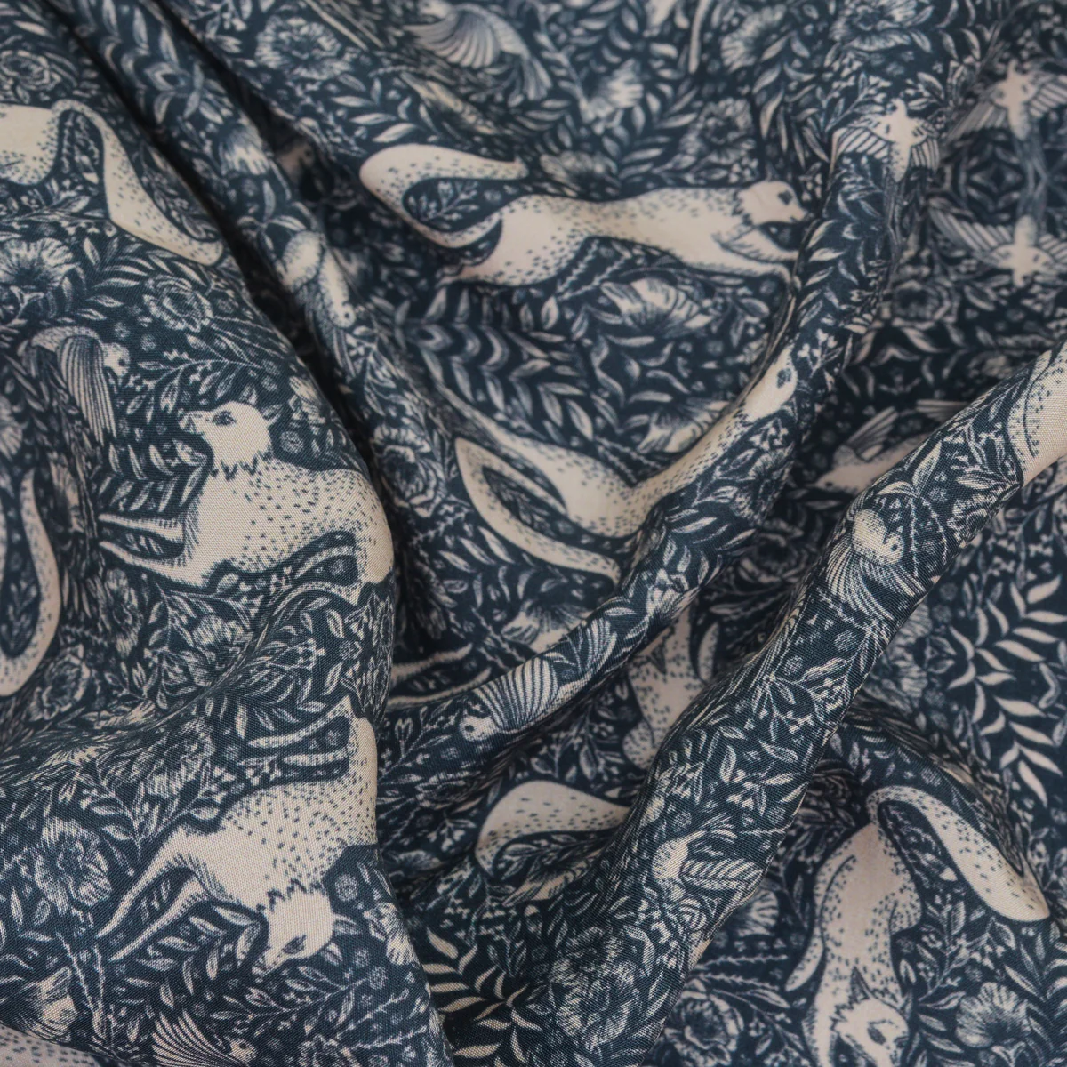 Blue transforms fox from potentially crafty to confidently clever. The cool tones create psychological distance that reads as strategic thinking rather than sneaky behavior. Navy suggests corporate intelligence, lighter blues imply creative problem-solving, and our 7-shade spectrum allows mood variation. The blue also makes the fox pattern more versatile – working with both warm and cool color palettes.