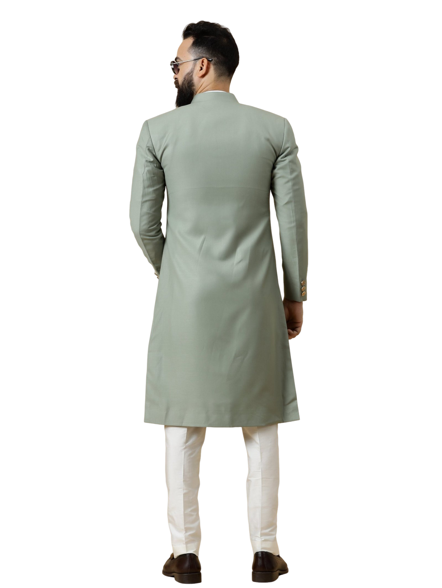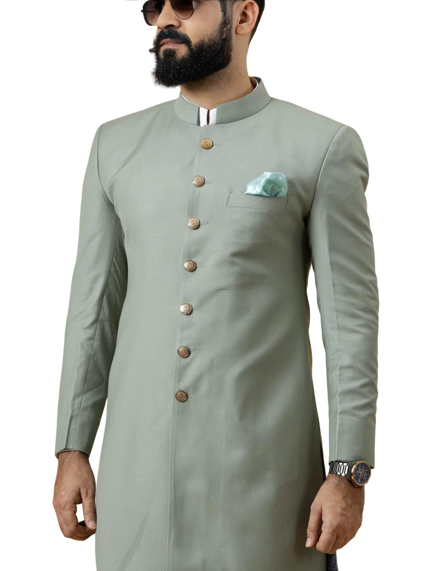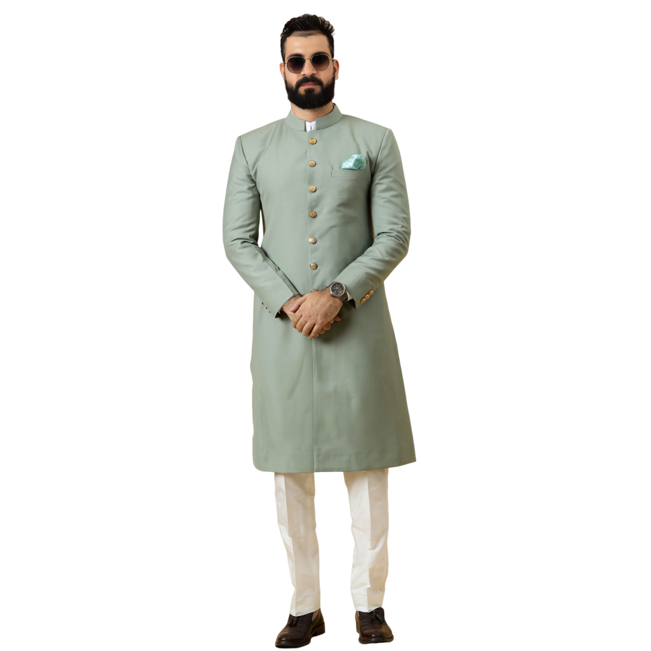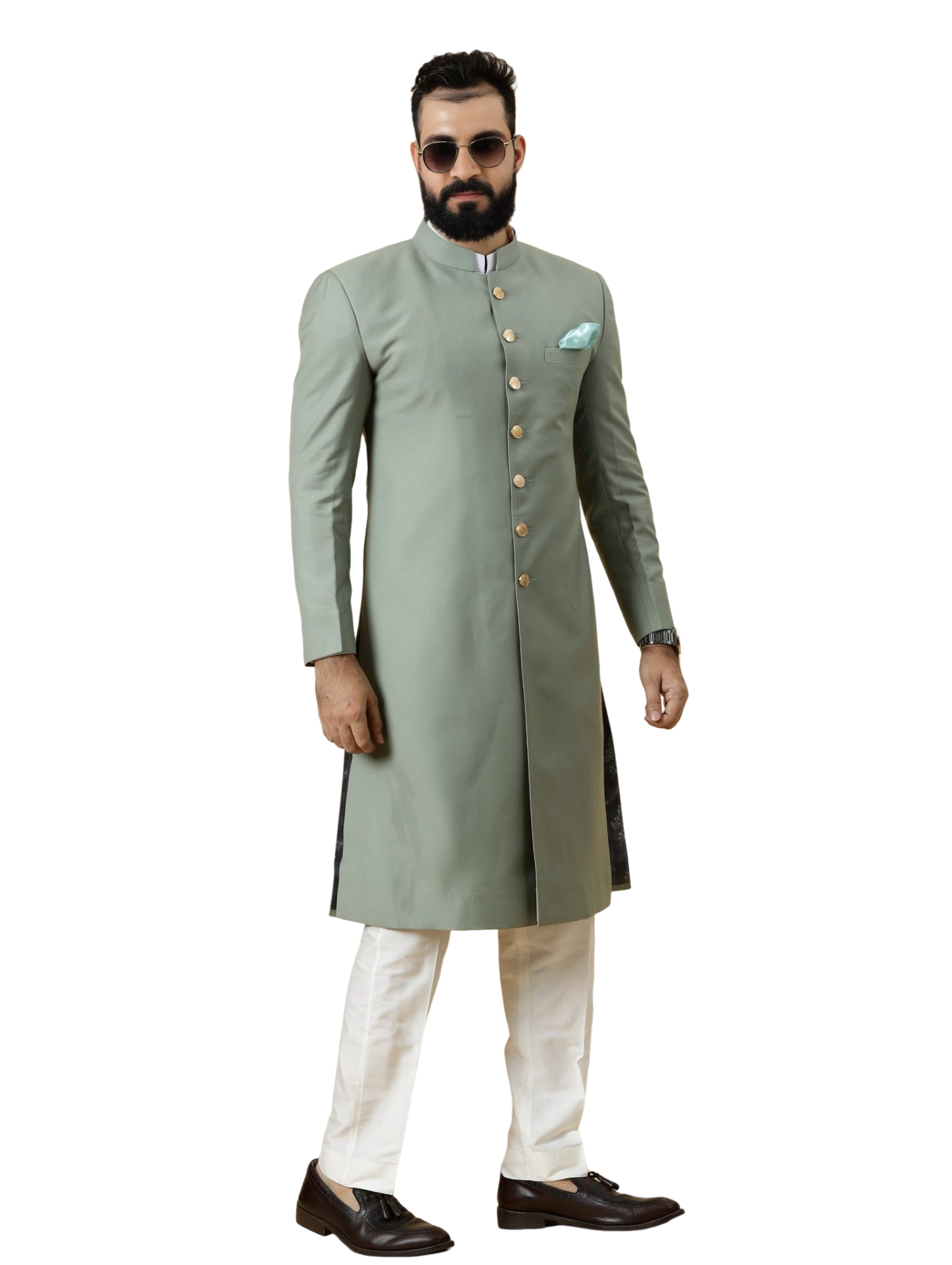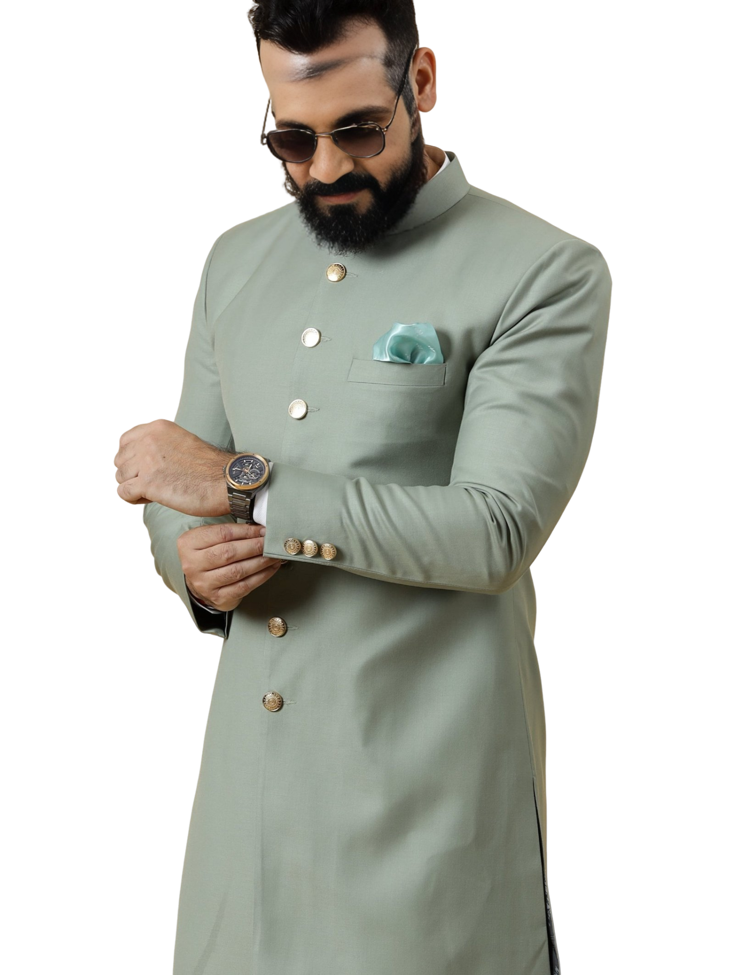Remember, true style is eternal, and our Classic Moss Green Achkan is designed to keep you looking elegant for years to come. Order now and step into a world of timeless sophistication.