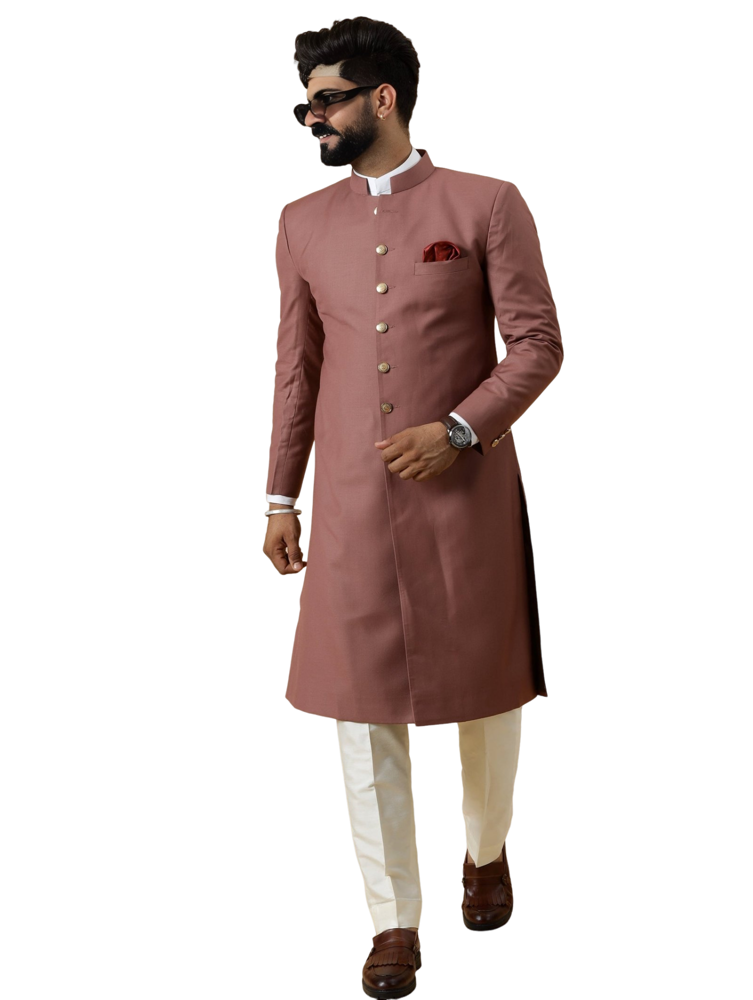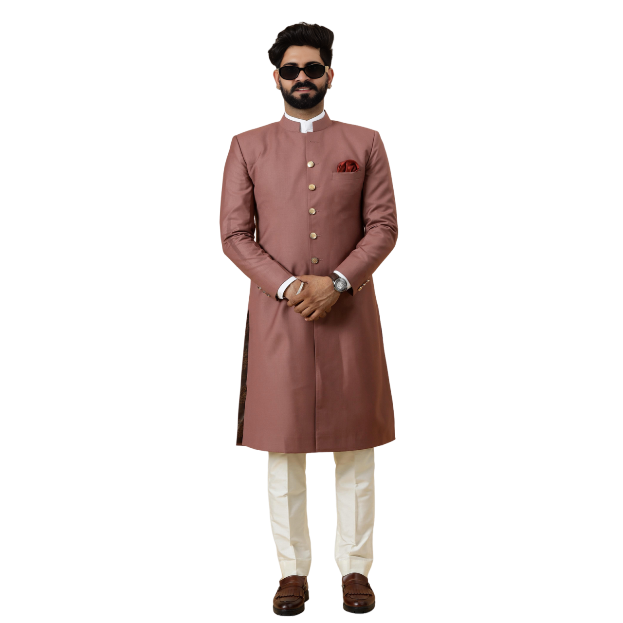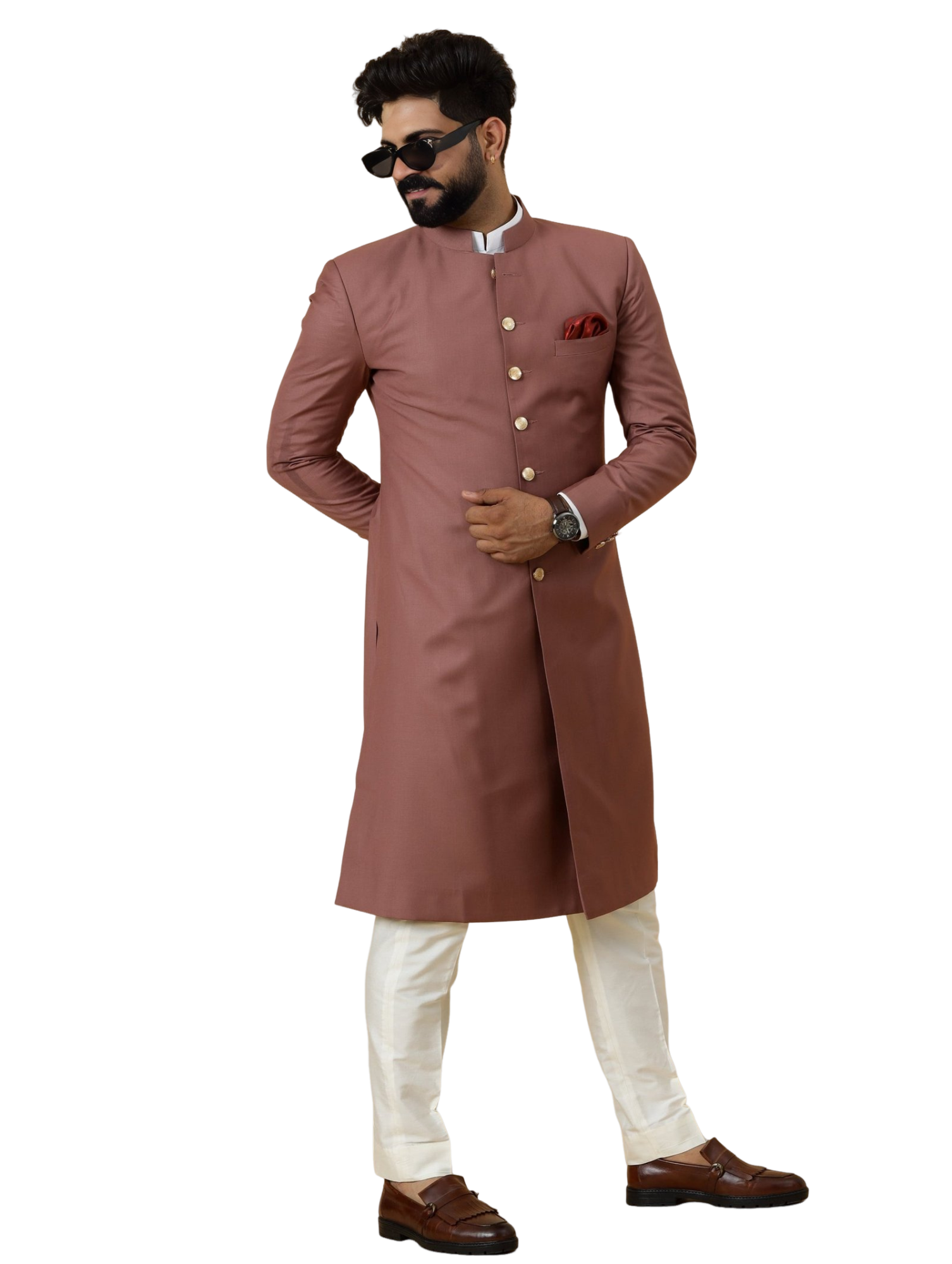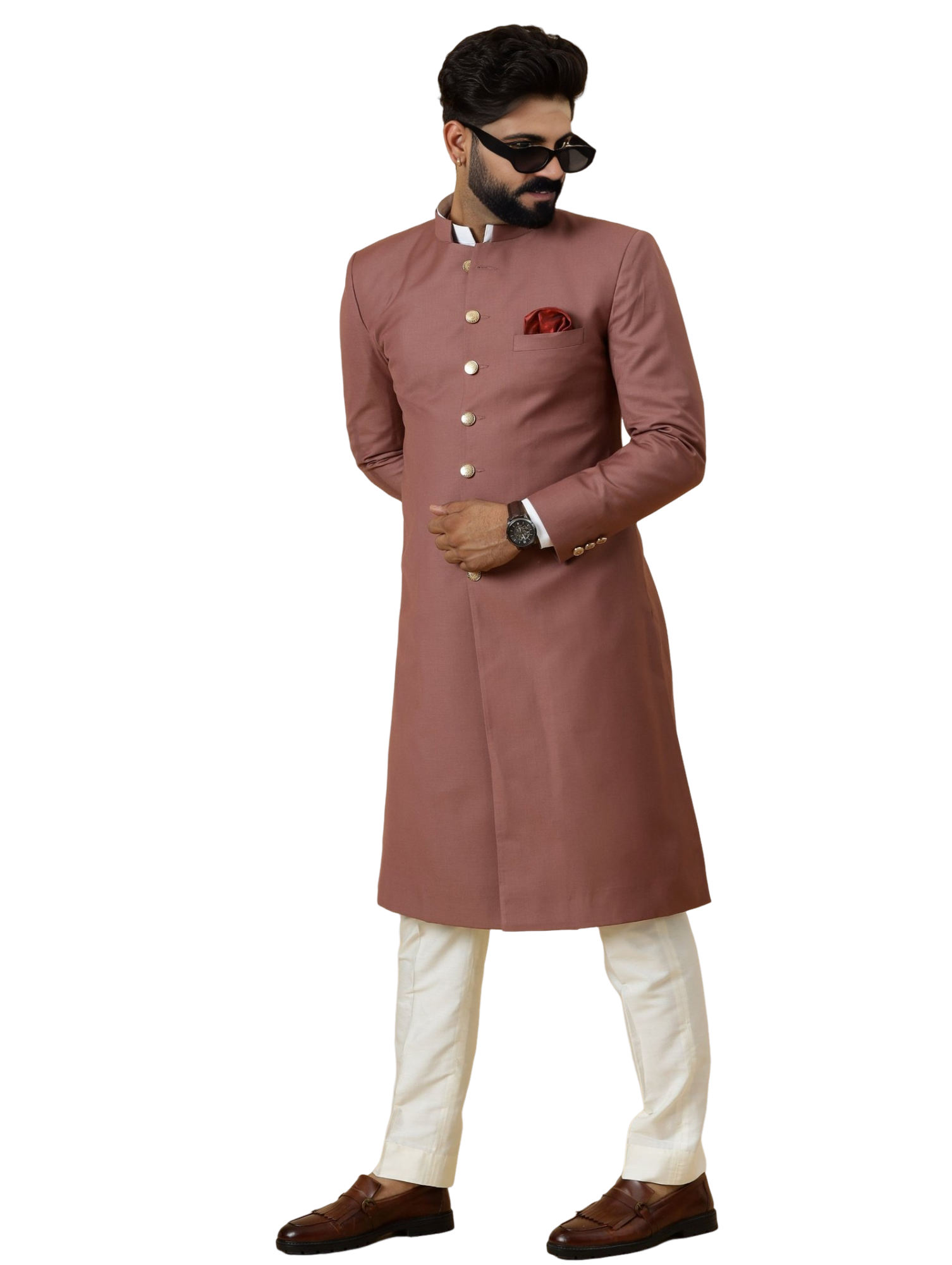 Remember, true style is eternal, and our Classic Rosewood Achkan is designed to keep you looking elegant for years to come. Order now and step into a world of timeless sophistication.