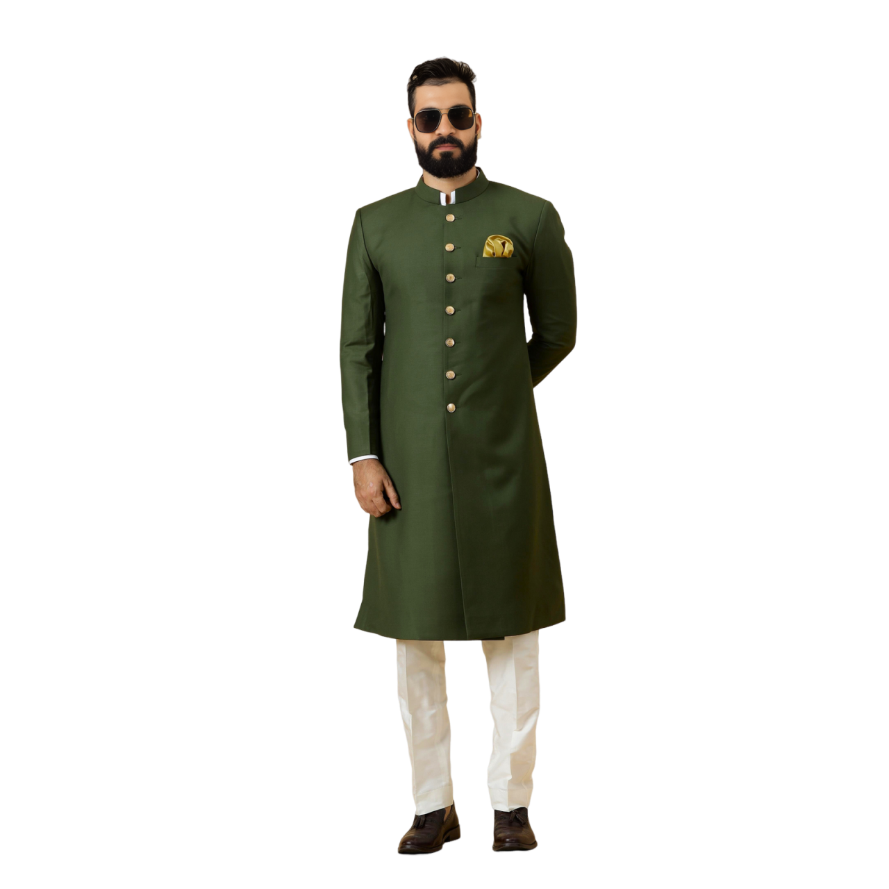 Remember, true style is eternal, and our Classic Seaweed Green Achkan is designed to keep you looking elegant for years to come. Order now and step into a world of timeless sophistication.