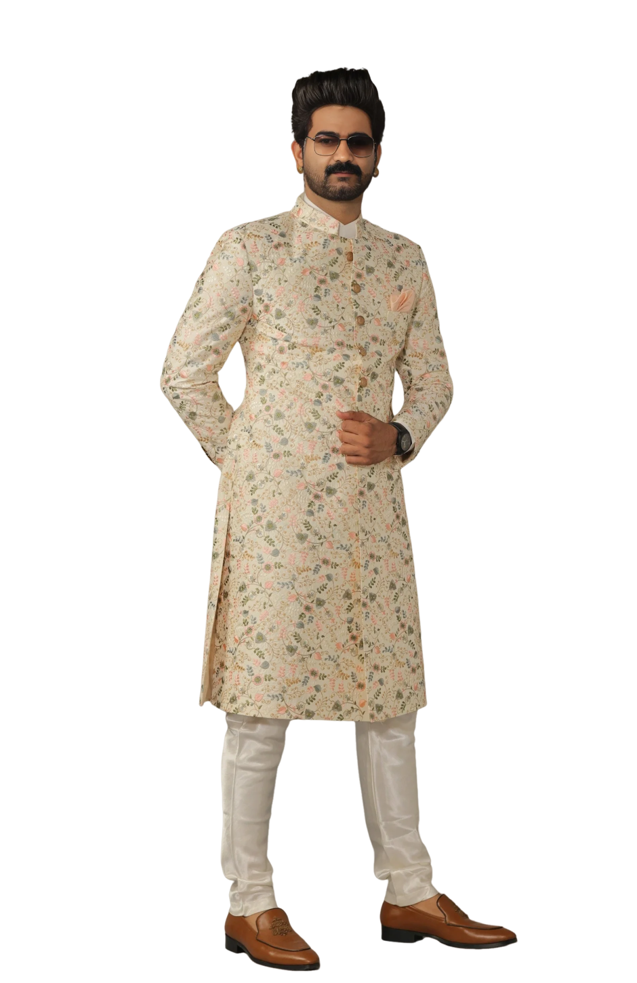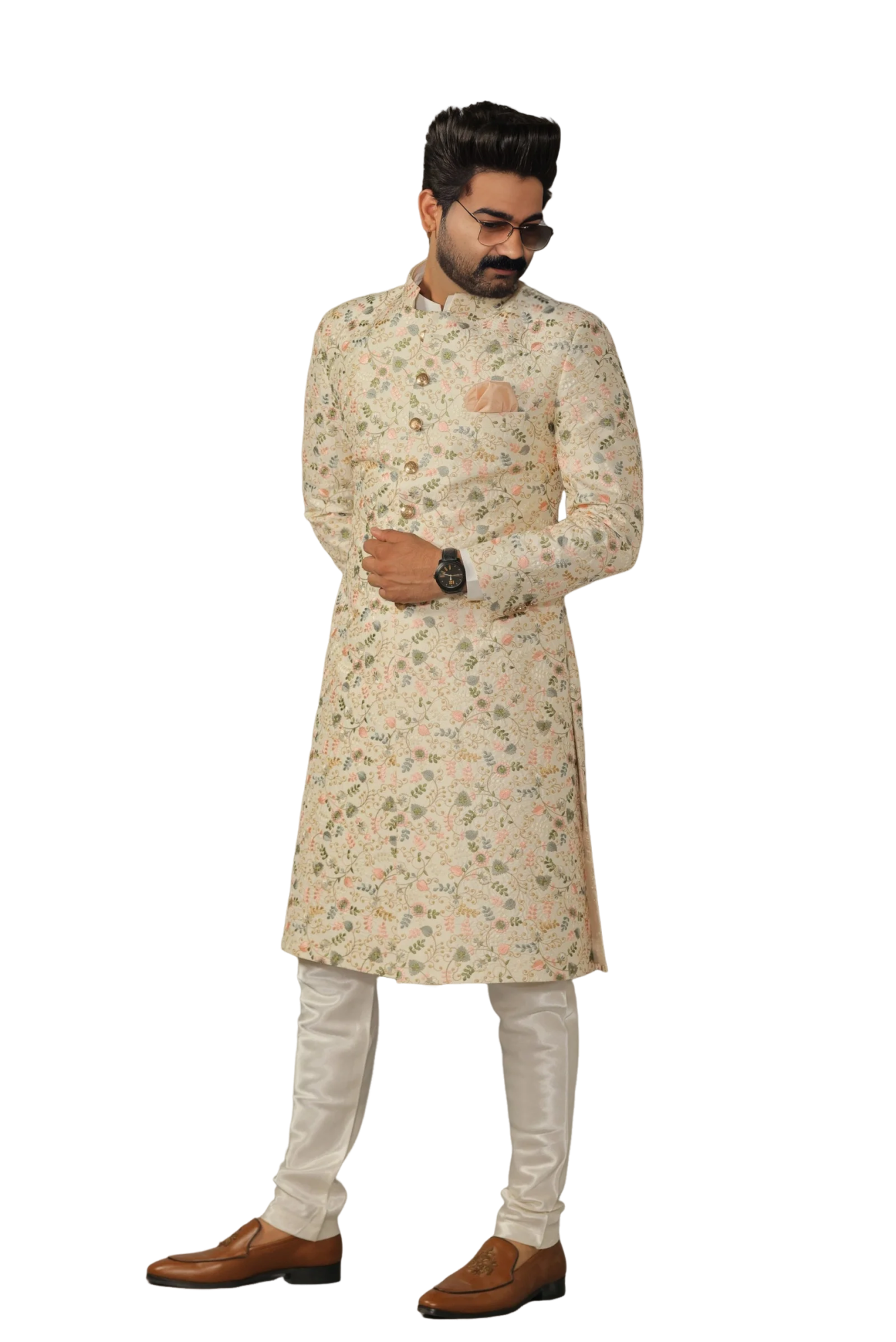 🌸 Still Settling for Machine-Made When You Could Wear 300 Years of Lucknowi Heritage? Discover the Sherwani That Whispers Royalty!