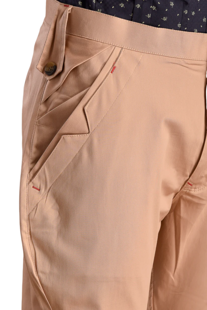 For classic elegance, we recommend block letters in tonal thread (darker taupe on taupe base) placed on the interior waistband or hip pocket. For bolder statements, contrasting thread (navy, burgundy) on the lower leg looks sophisticated. Script fonts suit formal occasions; block letters are timeless. Size matters -- 1-1.5 inches for exterior, 0.75 inches for discrete placement. Our design team provides personalized recommendations based on your style.