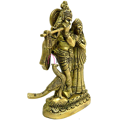 Welcome sacred protection with our Radha Krishna Dashboard Idol. Each piece features the divine couple in travel-friendly dimensions. Perfect for cars and homes at 14x9.5x3.81cm, this pure brass idol combines sacred love with protective blessings.