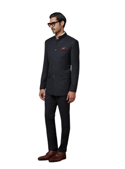 👔 Experience winter elegance with our Raven's Regalia Wool Bandhgala Suit. Masterfully crafted from premium wool, featuring precise measurements and sophisticated construction. Available in sizes S to XL, this luxurious formal wear combines warmth with distinguished style.