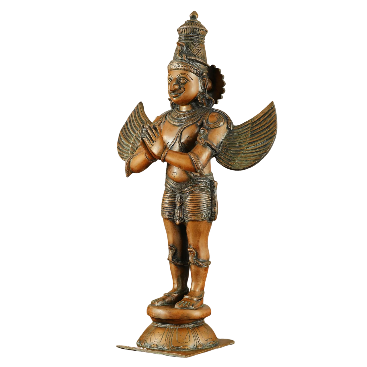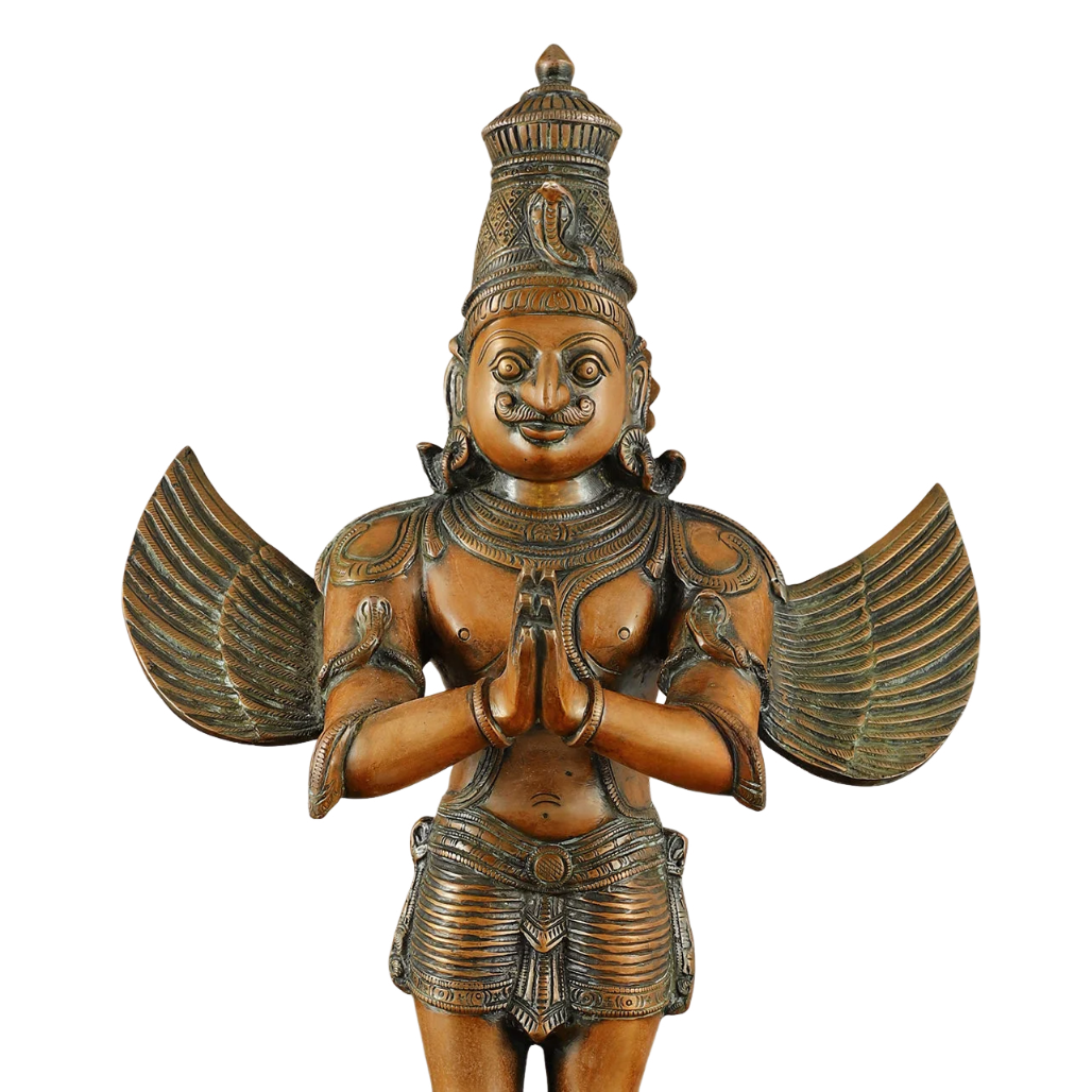 Transform your sacred space with our magnificent 22-inch Brass Standing Garuda Dev statue. You'll receive an authentically handcrafted eagle deity featuring stunning vintage bronze finish and majestic standing posture. Perfect for your temple, this divine messenger brings speed, protection, and prosperity. Trusted by 10,000+ devotees nationwide.
