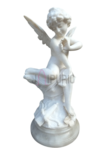 Own a piece of French classical art with Jaipurio's Rare Alabaster Cupid Putti & Butterfly Sculpture - a masterpiece of historical artistry!