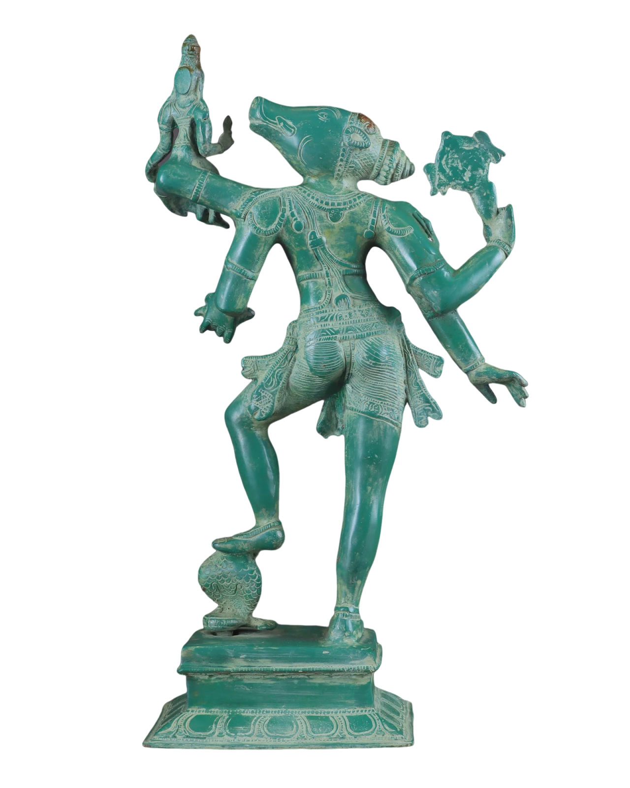 Transform your environmental consciousness with our magnificent 17-inch Green Vintage Brass Varaha Bhooma Devi featuring natural green patina and earth protection symbolism. You'll receive authentic ecological guardian combining divine earth rescue with nature's wisdom. Perfect for eco-spiritual practitioners seeking environmental blessing. Trusted by earth-conscious devotees.