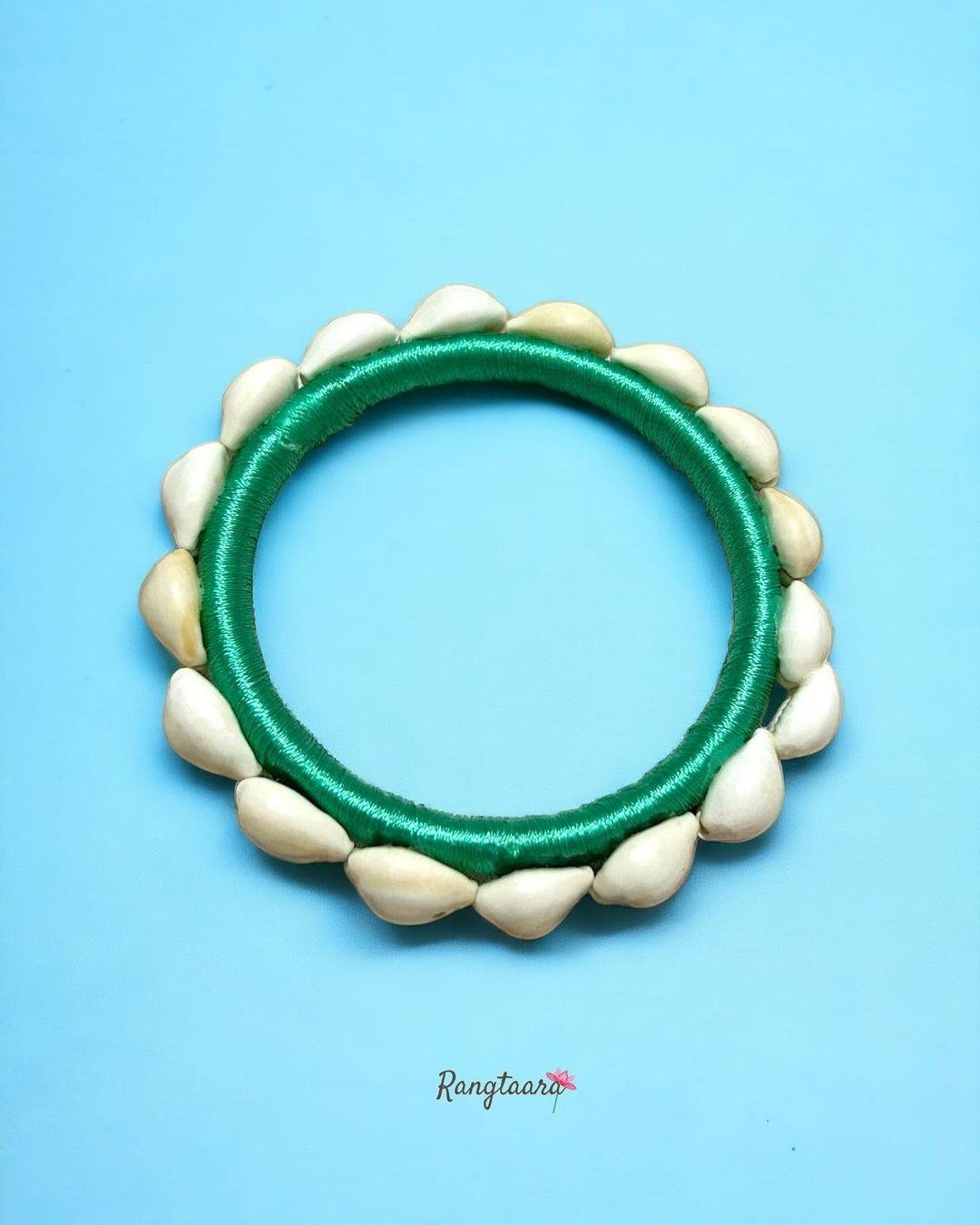 Elevate your style with Jaipurio's Handcrafted Shell Bangles (Kaudi Kade). These unique and versatile accessories are crafted using traditional kaudi shells.