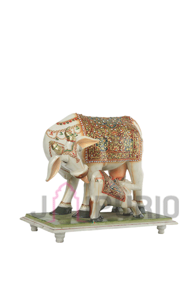 Transform your sacred space with Jaipurio's Divine Marble Kamdhenu Cow - a masterpiece of spiritual artistry!