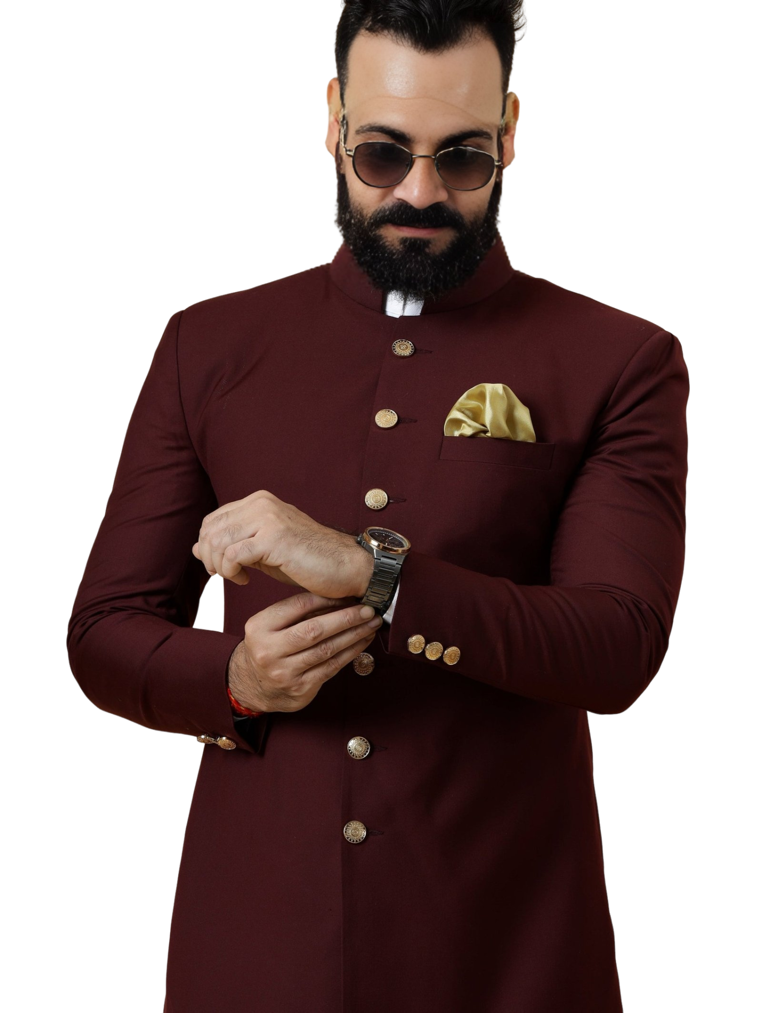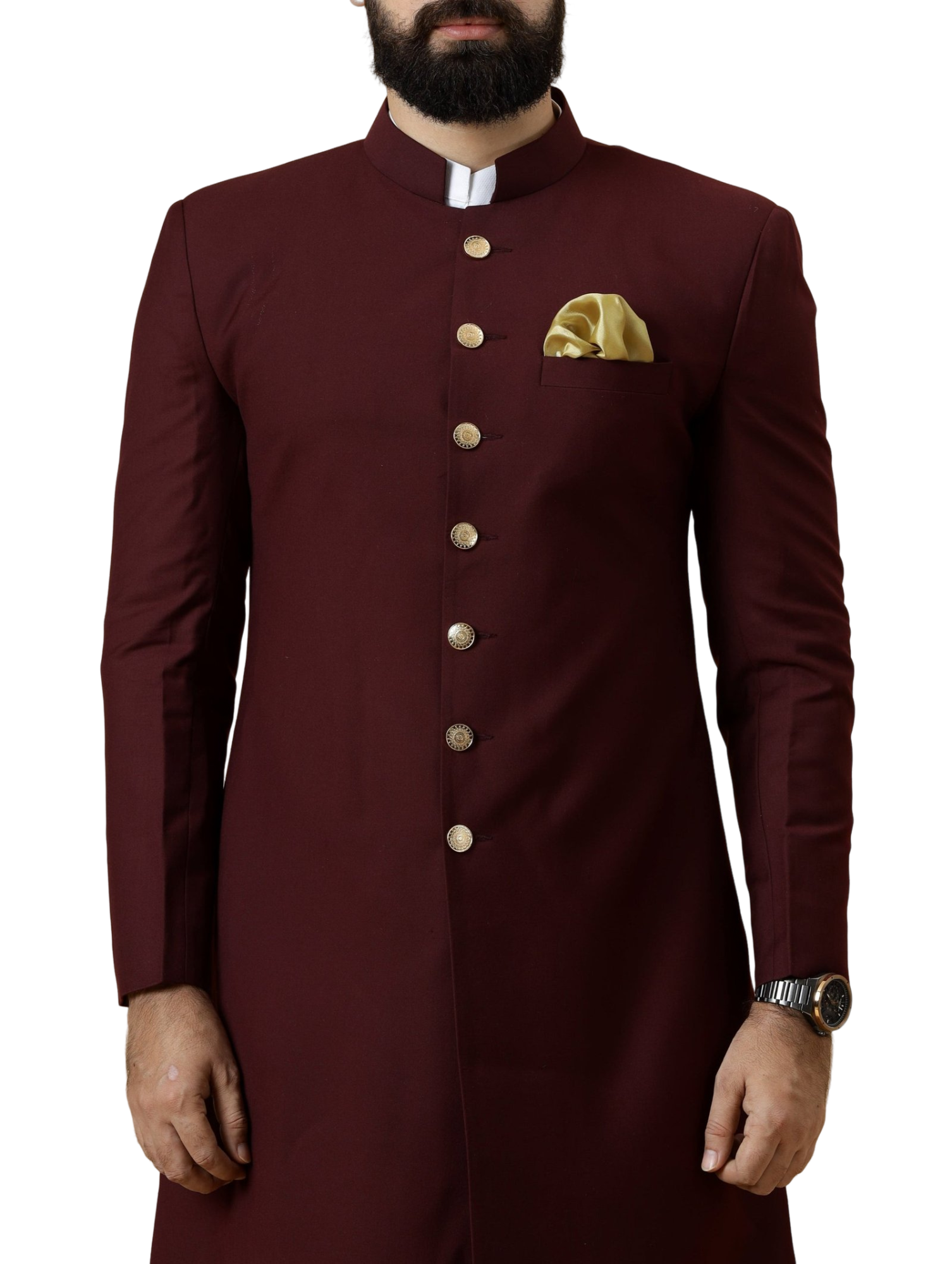 Remember, true style is eternal, and our Classic Wine Achkan is designed to keep you looking elegant for years to come. Order now and step into a world of timeless sophistication.