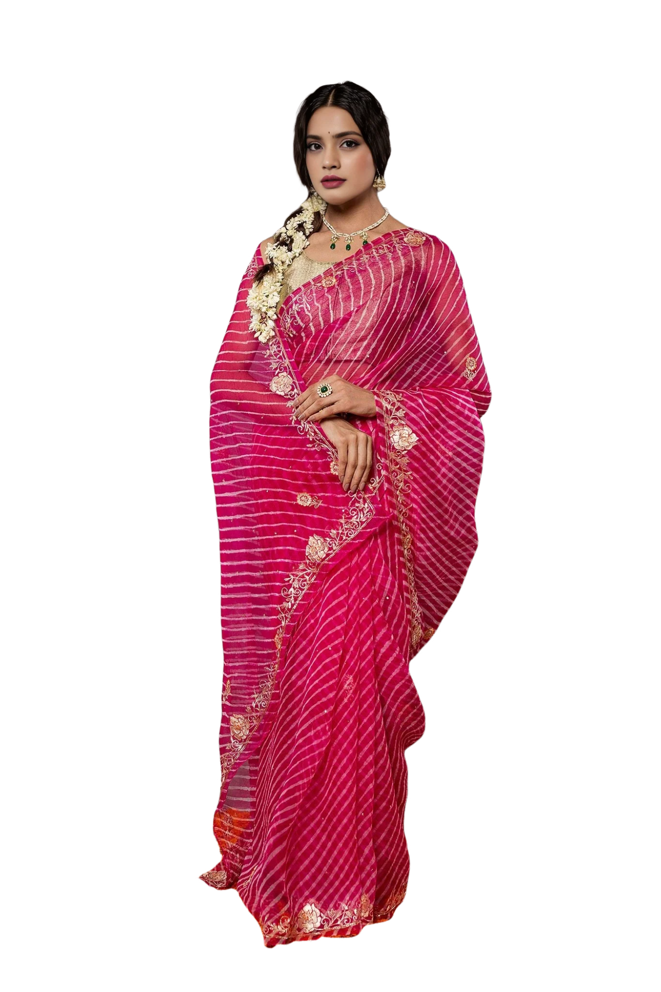 Key Features: 🌟 Triple Handwork (Zari, Resham, Salma) 🎨 Beautiful Magenta Shade ✨ Premium 20gm Georgette 👗 Traditional Lehariya Pattern 💝 Matching Blouse Piece 🏰 Classic Design 💫 Perfect Drape 🔝 Lightweight Comfort ✨ Contemporary Style 💎 Expert Craftsmanship