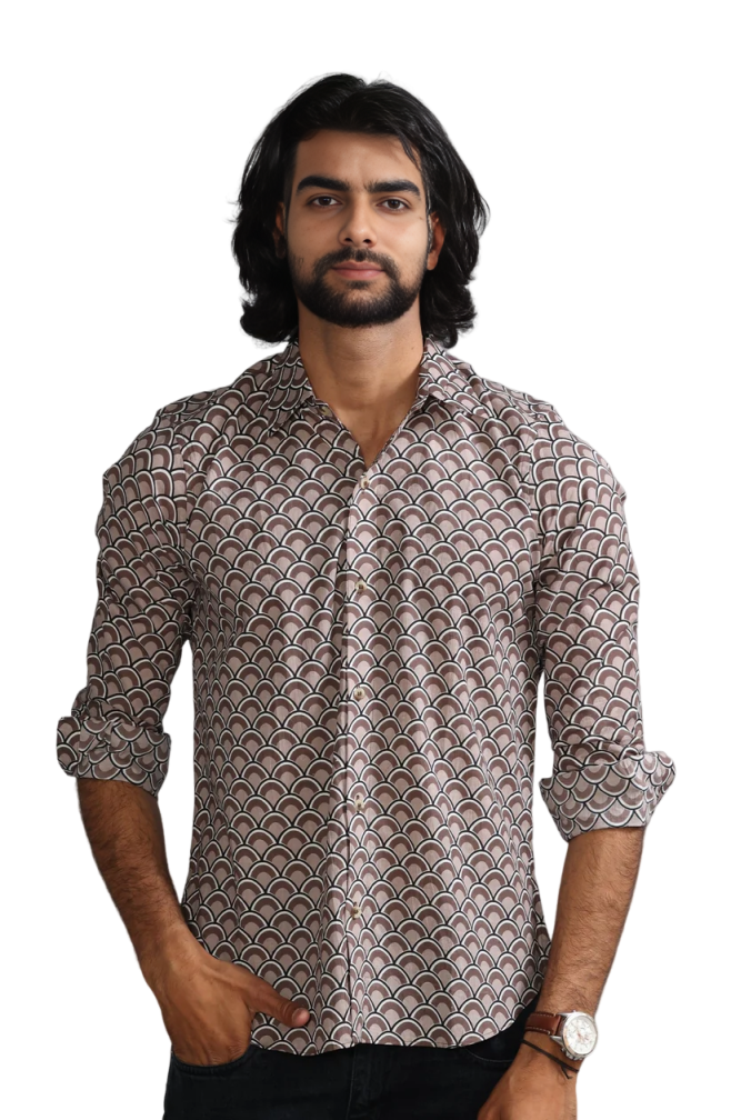 Our Tawny Brown Sanganeri Print Cotton Shirt addresses each natural challenge: