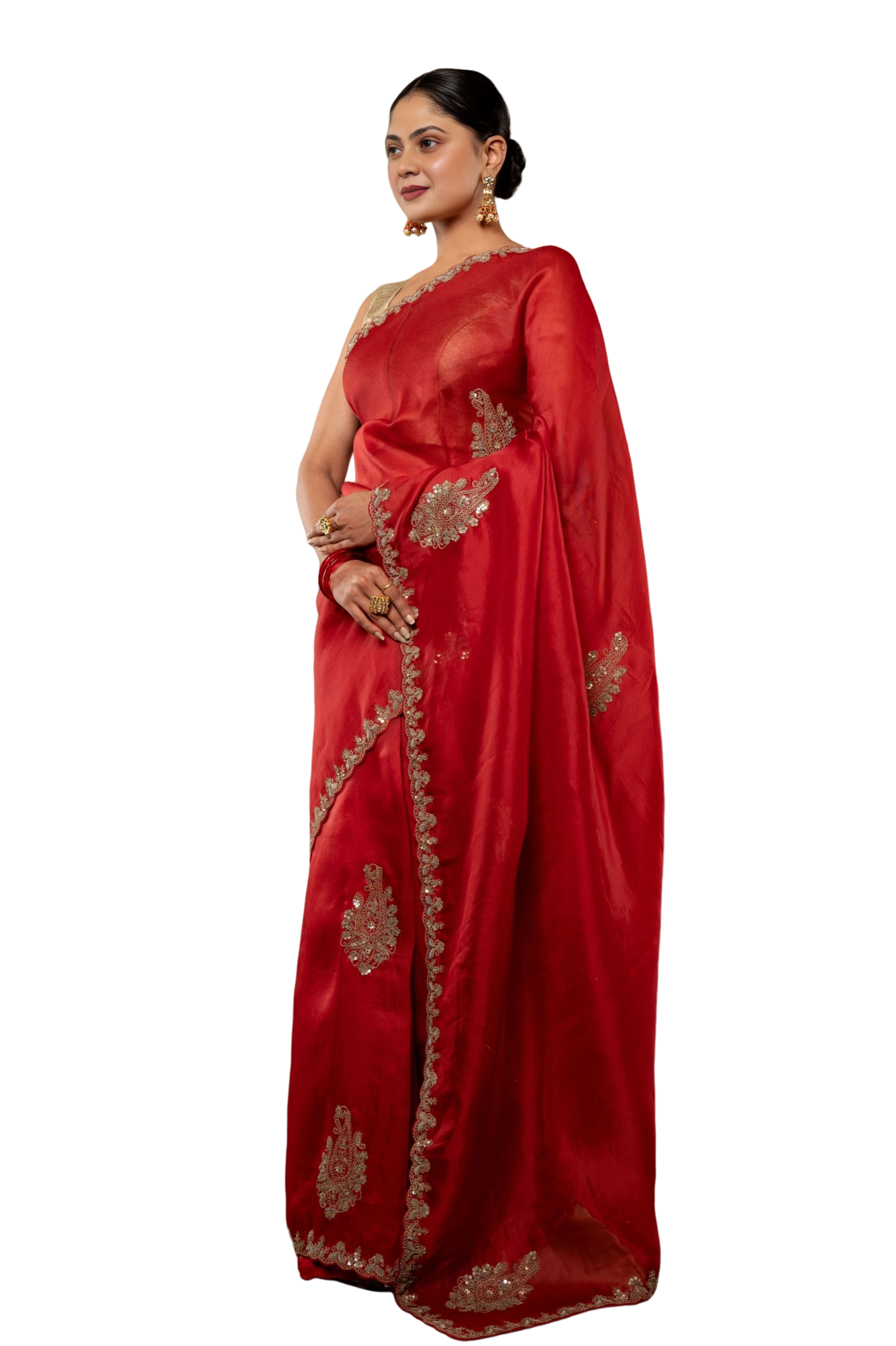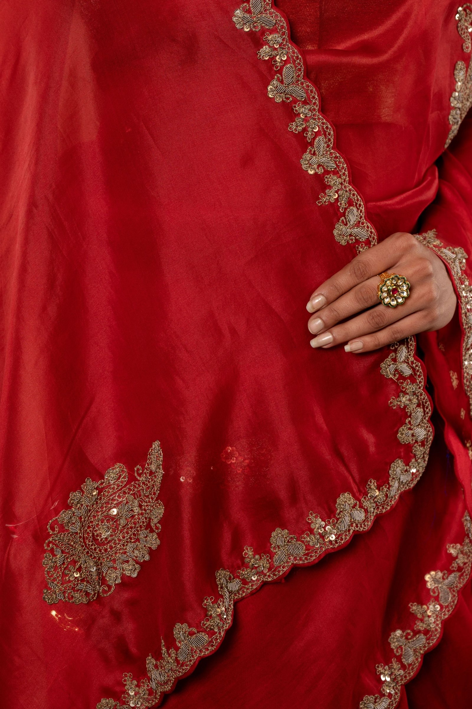 Make a lasting impression at formal events with this stunning saree. Whether it's a gala dinner, a corporate event, or a formal celebration, this organza saree will ensure you look your best. The burgundy red color and antique work create a look that is both refined and memorable.