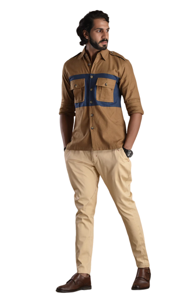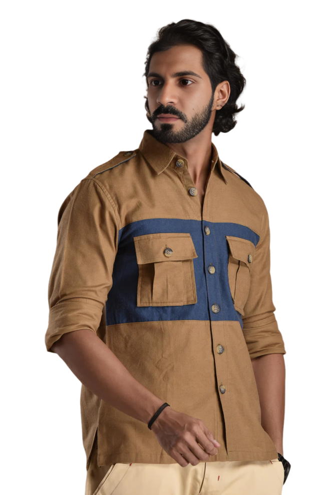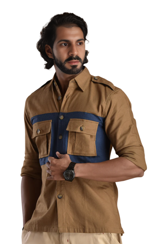 Camel Brown Hunt Style Shirt - Premium Cotton Safari Outdoor | Jaipurio
