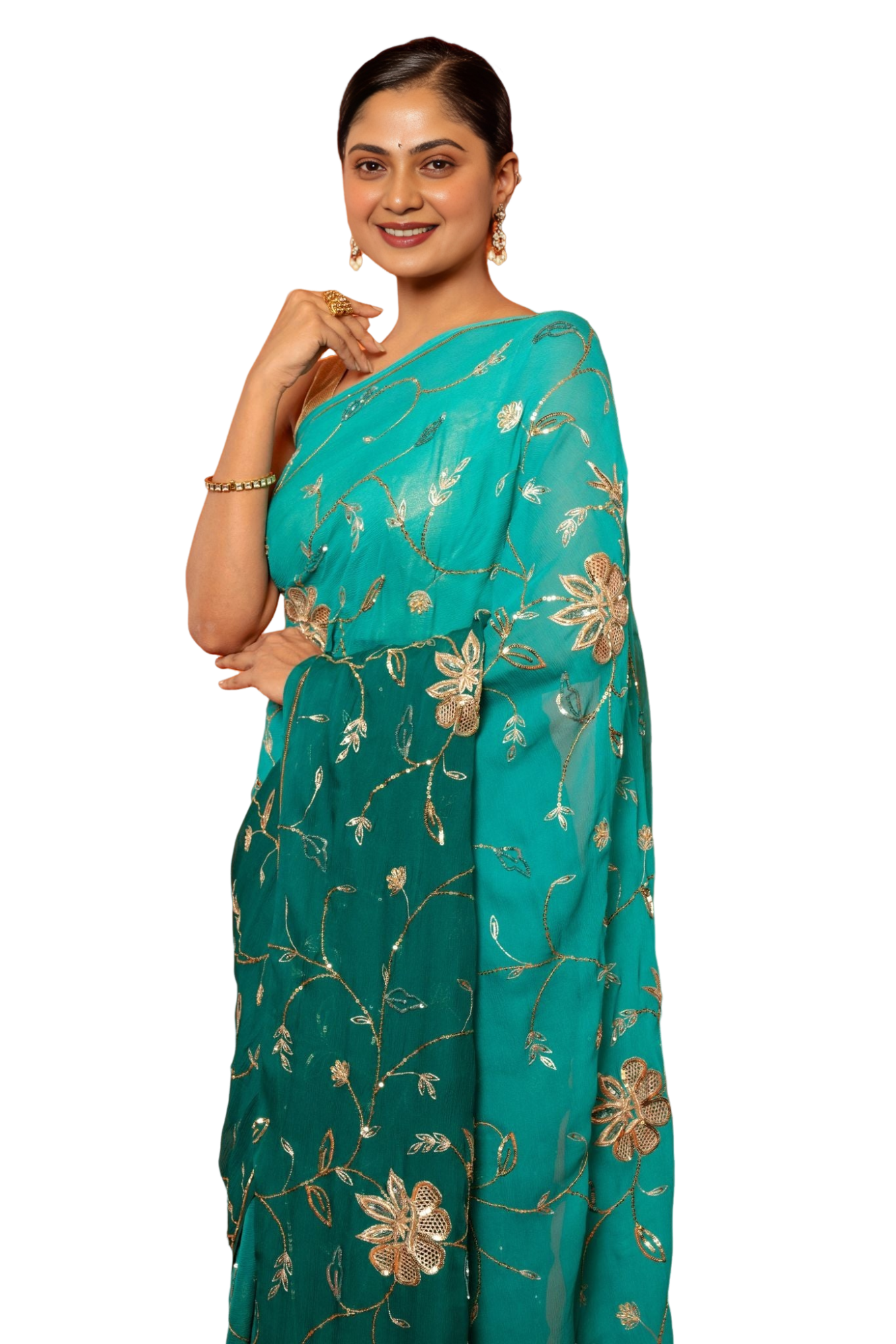 Experience the epitome of craftsmanship with our Sky Pure Chiffon Saree. Each piece is meticulously created by master artisans who combine three distinctive handwork techniques to create a masterpiece that speaks of luxury and tradition.