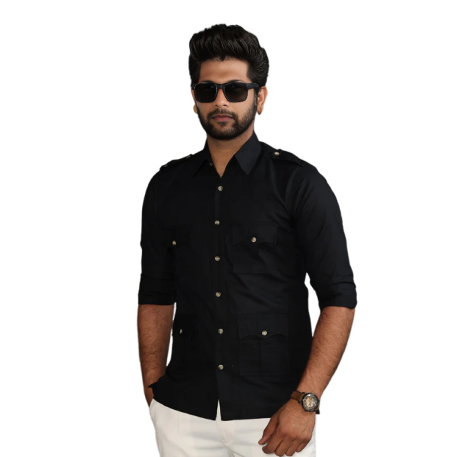 Our Black Color Turkish Linen Hunting Shirt Men offers you: