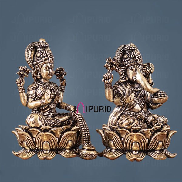 Measuring just 3 inches in height and 2 inches in width and depth, these Pure Brass Unique Lord Ganesha and Goddess Lakshmi Idols are perfectly sized for versatile placement options. Their compact size allows you to easily incorporate them into your existing spiritual decor, whether on a small altar, bookshelf, or work desk. Despite their petite stature, these idols maintain their intricate detailing and powerful presence.