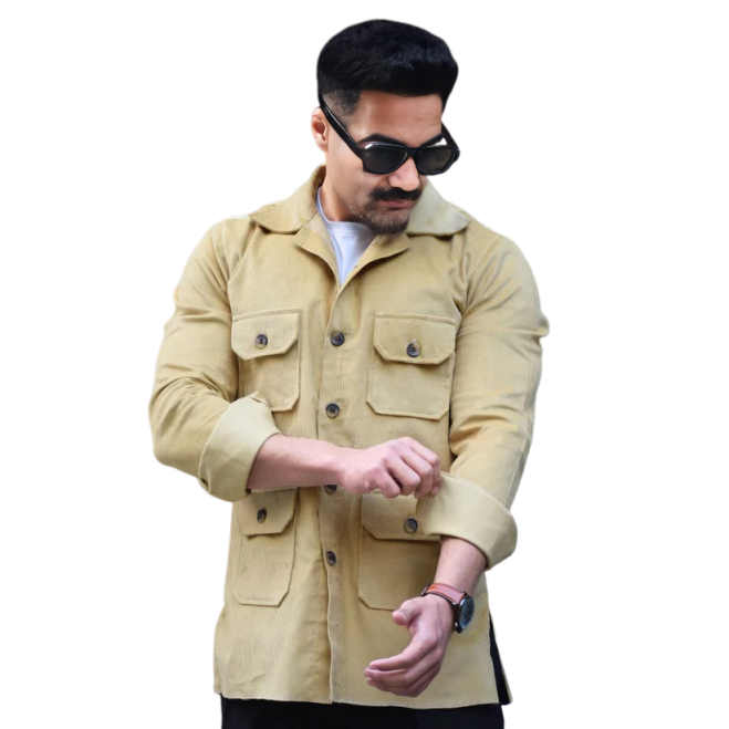 Parmesan Yellow Corduroy Hunting Shacket Men - Buy Unique Vintage Style | Jaipurio